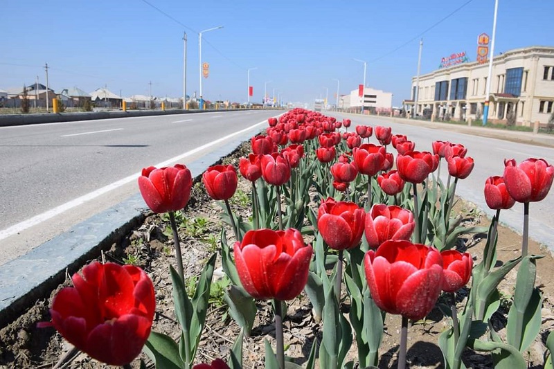 Алқызыл гүлдер қаладағы Алматы алаңына және Б.Саттарханов даңғылы мен Әмір Темір, Тыныштықұлов көшелерінің бойы мен Қожа Ахмет Ясауи мешітінің маңайына отырғызылған.