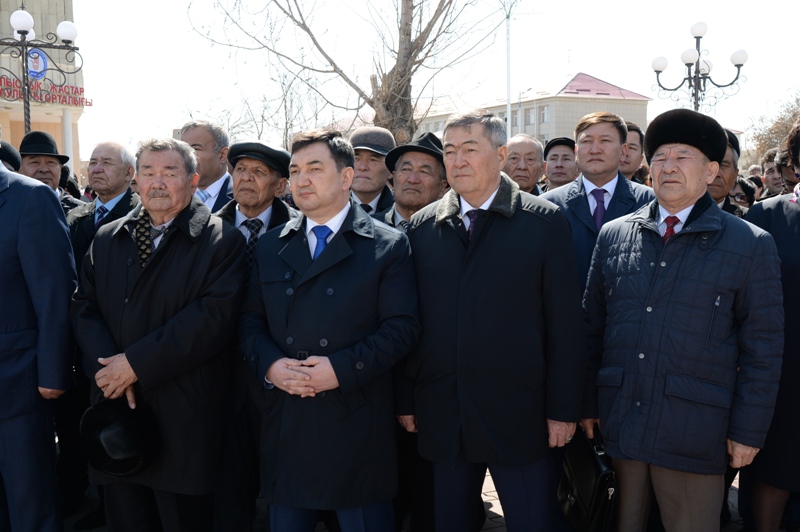 Сондай-ақ, салтанатты шараға ҚР ҰҒА академигі, Қ.Сәтбаев атындағы Қазақ ұлттық техникалық зерттеу университетінің профессоры Досмұхамбет Кішібеков, Қазақ гуманитарлық заң университетінің профессоры Әбдіжәлел Бәкір, ҚР Парламенті Сенатының депутаты Мұрат Бақтиярұлы қатысты. Мұнан соң салтанатты түрде ескерткіш жамылғысы түсіріліп, гүл шоқтары қойылды.