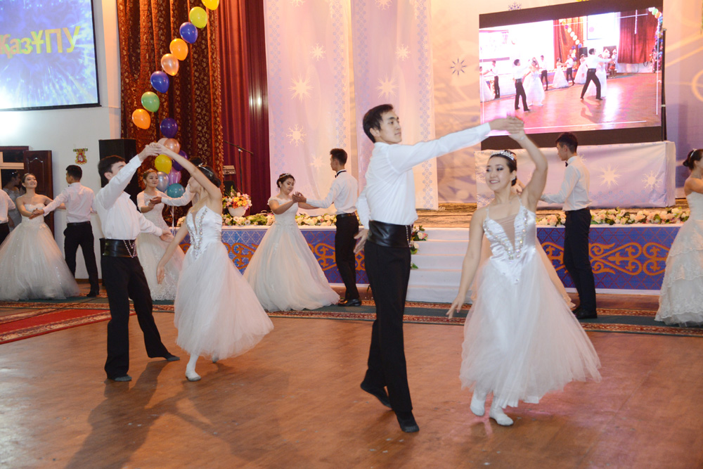 Одан әрі мерекелік шара университет өнерпаздарының концерттік бағдарламасымен жалғасты. Концерттік бағдарлама барысында арнайы дайындалған студенттер тобы балдық вальс билеп кештің көркін қыздыра түсті. Университетіміздің абыройын республика көлемінде танытып жүрген «Апорт» жайдарман тобы көрермендерге сапалы әзілдері арқылы көтеріңкі көңіл-күй сыйласа, «Дара» би тобы кешке жиналған студенттермен флешмоб биледі. Кеш соңы барлық қатысушылардың би кешіне ұласты.
