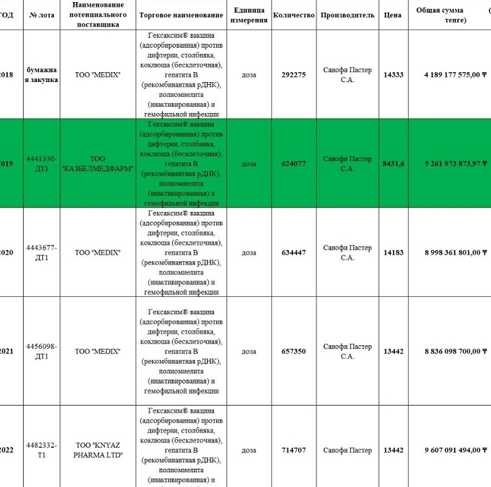 Осылайша «Әділдік жолы» ұйымы вакцина бағасының әр жылдары мың құбылғанын байқап қалып, бұл істің соңына түскен.