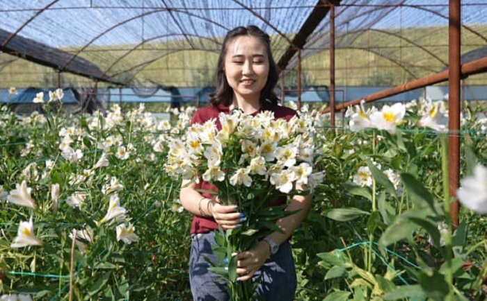 Бұл кәсіппен 6 жылдан бері айналысып келеді.  Мұнда 3 түрлі гүл өседі. Басым бөлігі осы «альстромерия» деп аталатын гүл. Алғашқыда үй ауласында гүл өсіруден басталған кәсіп бүгінде отбасылық бизнеске айналған. 6 сотық жылыжайдың аумағы 22 сотыққа ұлғайған. Отбасының барлық мүшесі осы жылыжайда еңбек етіп, нәпақасын тауып отыр.