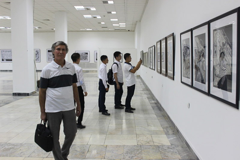 Өзбекстан елінде тұңғыш рет жеке көрмесі өтіп жатқан қазақ суретшісінің туындыларын тамашалауға келген жұрттың қарасы қалың. Көрменің тұсаукесеріне Өзбекстан Суретшілер Академиясының төрағасы Акмаль Нуридинов, Өзбекстанның Халық суретшісі Леким Ибрагимов сынды есімдері алты алашқа танымал қыл қалам шеберлері қатысты. Сондай-ақ, Қазақстан Суретшілер Одағының төрағасы Өмірбек Жұбаниязов, ҚР Мемлекеттік сыйлығының иегері, суретші Насыр Рүстемов, Түркістан облысы Суретшілер Одағының төрағасы Нұрлан Шилібаев, Түркістан облыстық Көркемсурет галереясының директоры Айнабек Оспанов сынды өнер майталмандары мен өнерсүйер қауым өкілдері келді.