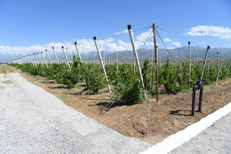 Мұнан кейін облыс әкімі Тасарық ауылында орналасқан жеке кәсіпкер С.Танабаевтың жүзім шаруашылығында болды. Кәсіпкер тастақ жерді тиімді пайдаланып, 2016 жылы жаңа технологиямен 10 гектарға жүзім еккен. Ал, 2017 жылы қосымша 10 гектар жерге 16 мың түп көшет отырғызды. Шаруашылыққа қарасты 20 гектарға жалпы саны 32 мың түп «Таифи-Розовый» жүзімі егілген. Бетон тіреуіштер орнатып, тамшылатып суару жүйесін қолданған. Көшеттерді Сарыағаш ауданынан алдырған. Жобаның жалпы инвестициялық құны – 50 млн. теңге. Бұл қаржының тең жартысын «Даму» бағдарламасы аясында «Оңтүстік» аймақтық инвестиция орталығы бөлген. Қожалық басшысы 10 гектар жерді сатып алса, 10 гектар жерді мемлекеттен 49 жылға жалға алған. Жүзім алқабының әр гектарына мемлекет тарапынан 750 мың теңгеден субсидия берілді. Жүзімбақ биыл алғашқы өнімін бере бастайды. Гектарына 35-40 тоннадан өнім береді деп күтілуде. Бүгінде жүзімбақта 10 адам тұрақты еңбек етіп жатыр. Жалақылары орташа есеппен 50 мың теңгені құрайды. Ал, маусымдық жиын-терім мезгілінде мұнда 20-ға жуық адам жұмысқа тартылады. Шаруа қожалығы алдағы жылдары жүзімді қайта өңдеу ісін қолға алып, жүзімбаққа жақын маңнан көкөніс сақтау қоймасының құрылысын бастамақ.