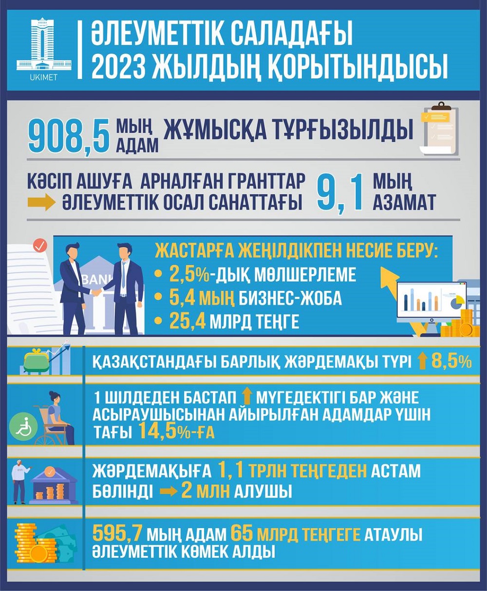 Бүгін Үкіметтің әлеуметтік сала бойынша 11 ай бойы атқарған жұмыстарының есебі жарияланды. Қолға тиген есепке көз салғанымызда халықтың жұмыспен қамтыу, кәсіпкерлікті дамыту бойынша көптеген жұмыстар атқарылғанына байқадық. Енді соны тарқатып айтсақ.