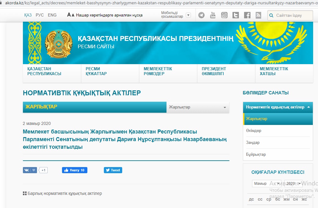 Айта кетелік Назарбаева Сенат төрағасы қызметіне былтырғы жылдың 2-ші қыркүйегінде сайланған.