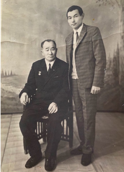 Суретте: Төрехан Жақыбай би баласы; Ғани Төреханұлы ұстазы Әбілхан Қастеевпен.