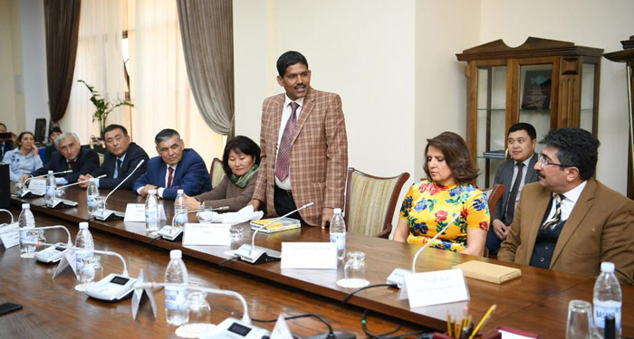 Түркия, Үндістан, Өзбекстан, Болгария, Иран, Қазақстан, Ресейдің Тыва, Дағыстан аймақтарынан жиырмадан астам әдебиетшілері мен ақын-жазушыларынан тұратын зиялы қауым өкілдері Түркістан облысының әкімі Түймебаев Жансейіт Қансейітұлының қабылдауында болып жаңа облыс орталығының мәдени-рухани даму бағытымен танысты. Делегаттар қатарында Түркия Республикасы