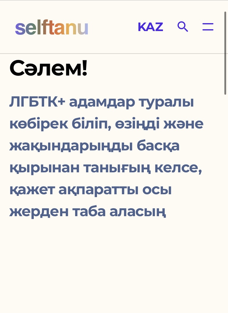 Қазақстанда ЛГБТК өкілдеріне арналған жаңа сайт ашылды. Мұнда қазақ және орыс тілінде ақпараттар ұсынылған.