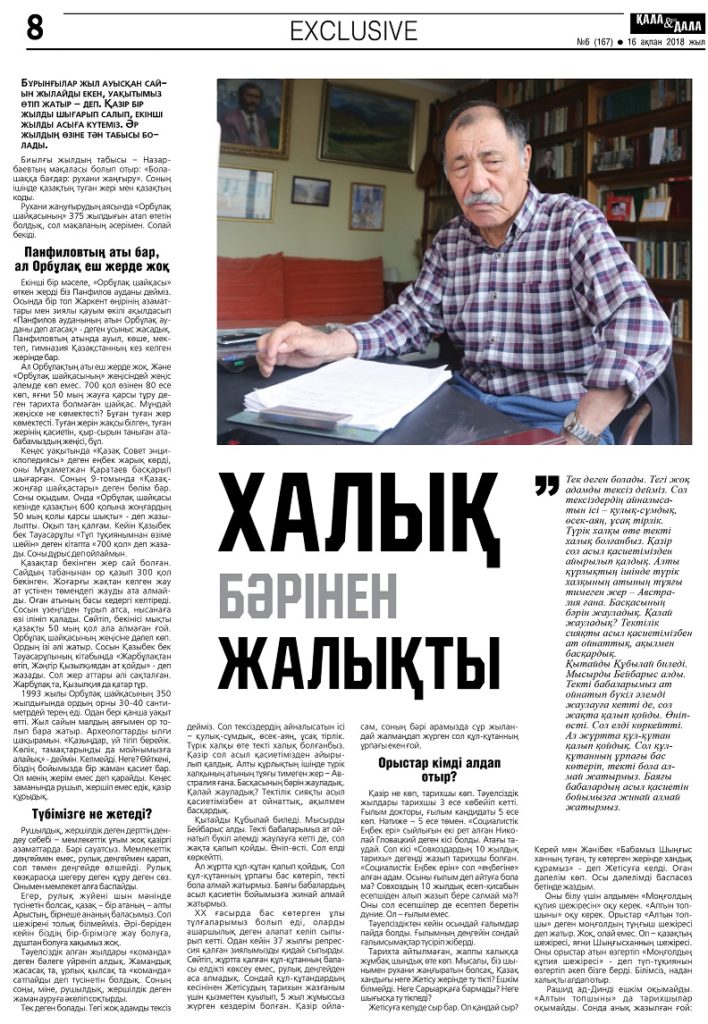“Қала мен Дала” газетіне берген сұхбатынан үзінді