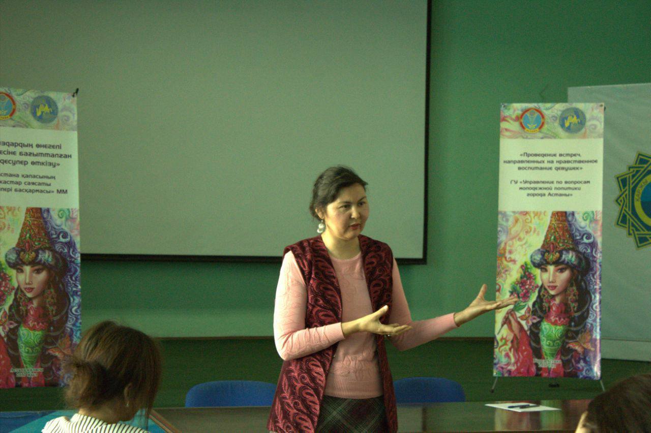 Сондай шаралардың бірі, Астана қаласының жастар саясаты мәселелері басқармасының қолдауымен «Әлем» волонтерлік орталығы» ЗТБ-ы ағымдағы жылдың сәуір және қараша аралығында «Қыздардың өнегелі тәрбиесіне бағытталған кездесулер өткізу»жобасын өткізген болатын.