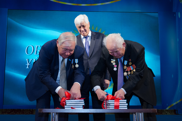 Салтанатты жиын сахнасында облыс әкімдігінің қолдауымен шыққан, облыс ардагерлерінің жетістіктерін паш ететін «Қариясы бар ел – қазыналы ел» атты жинақтың тұсауы кесілді.