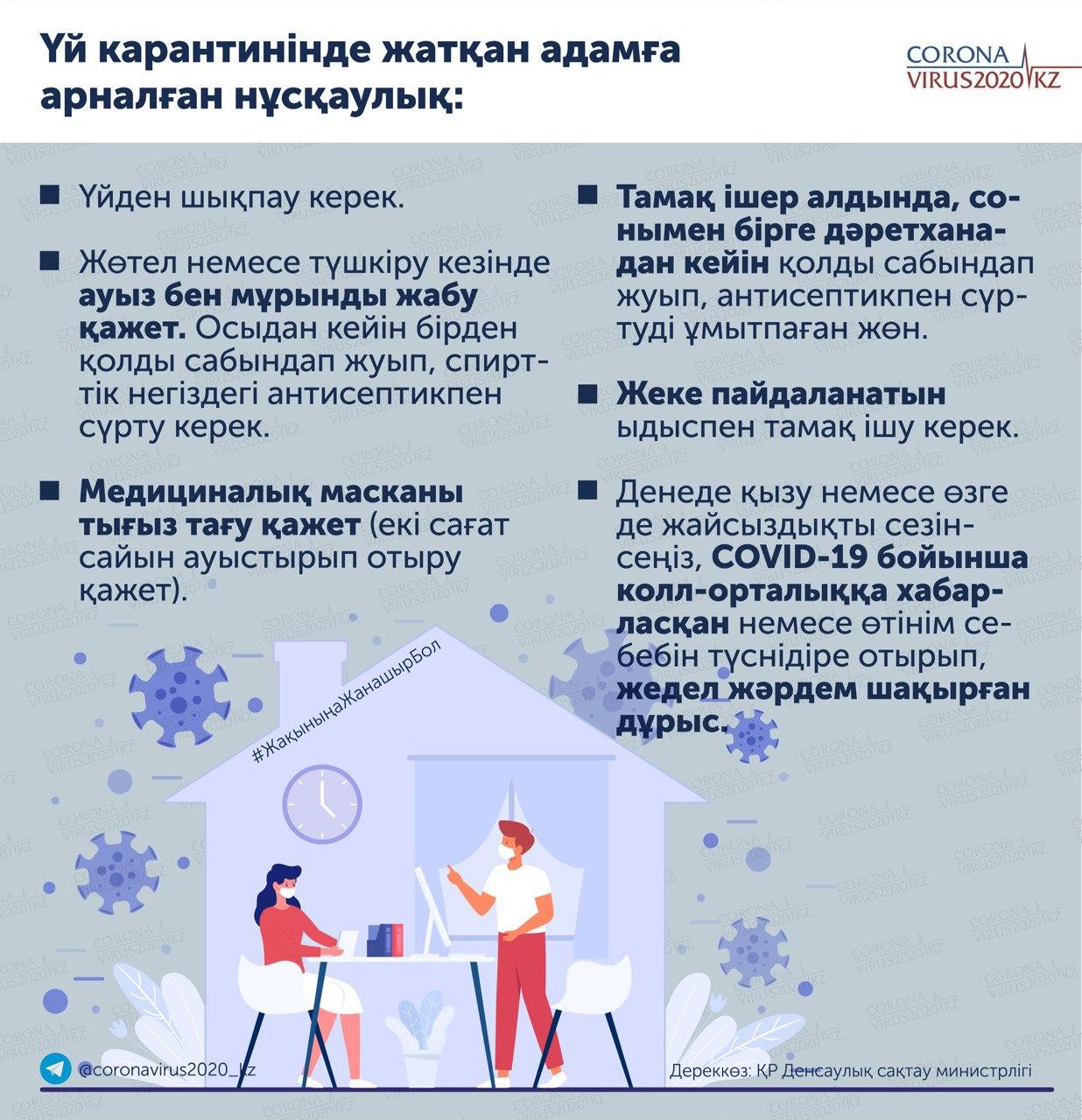 Үйде карантининде жатқан адам қалай сақтануы керек? (жадынамалар)