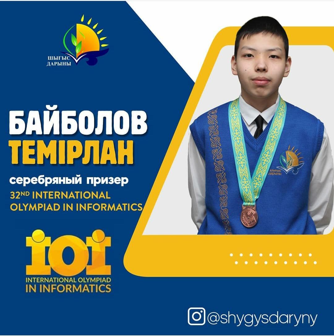 IOI 2020 нәтижелері бойынша Өскемен қаласы "Білім-инновация" мамандандырылған лицейінің түлегі Темірлан Байболов күміс медаль иеленді. Темірлан ҚР ұлттық құрамасының құрамында екінші жыл қатарынан шақырылып отыр. Ол республикалық олимпиадалардың, беделді халықаралық олимпиадалардың бірнеше дүркін жеңімпазы,