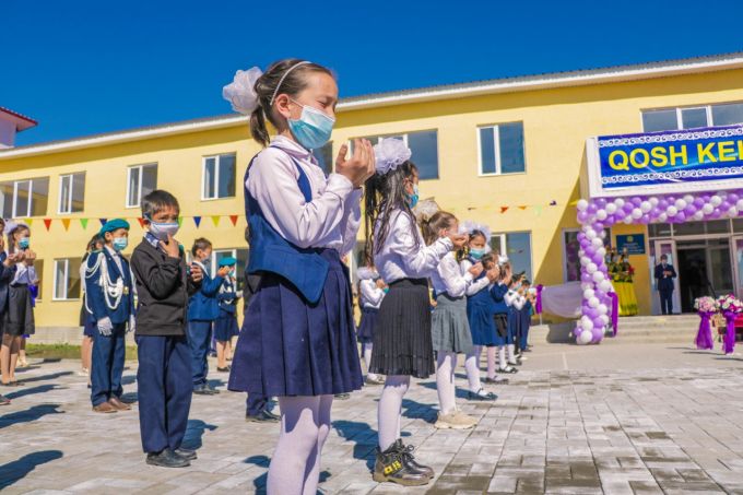 - Búgin kópten kútken mekteptiń ashylýy bolyp jatyr. Aýylymyzda jańa mektep boı kóterdi. Oqýshylar men ata-analardyń qýanyshynda shek joq. Burynǵy mekteptiń jaǵdaıy nashar bolǵan. Endi muǵalimder jańa kompúterlik synypta, ınteraktıvti taqtamen sabaq beretin bolady, - dep atap ótti Kóksý aýyldyq okrýginiń ákimi Álıa Bahtıarova.