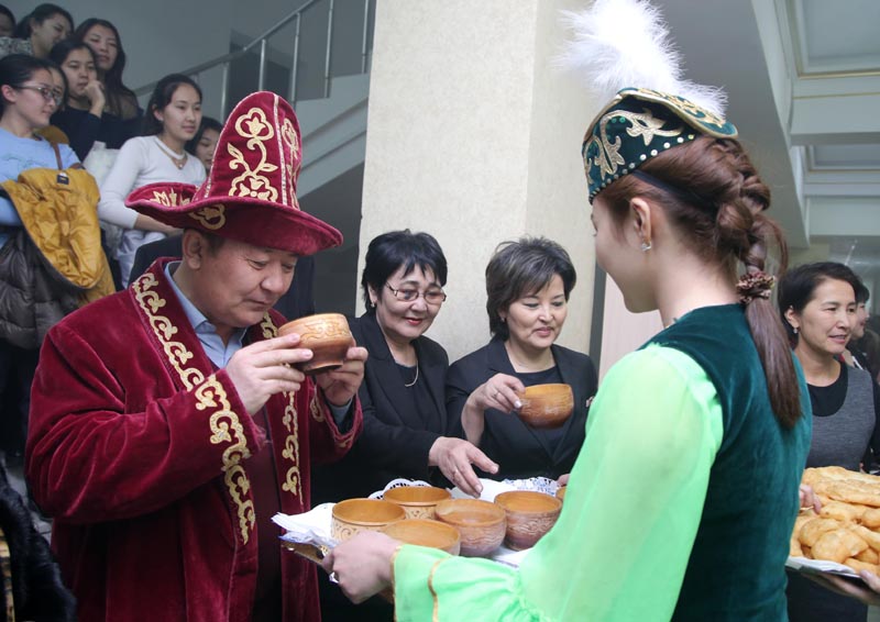 Bıyl da tańnan Qyzdar ýnıversıtetiniń ujymy bir-birimen qushaq jaıa amandasyp, aıdan aman, jyldan esen shyqqanyna qýanyp, aq tilekter aıtyp, án men kúı terbelgen aıryqsha jaǵdaıda atap ótti.