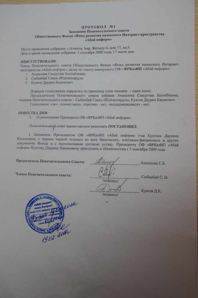 Bir – deńiz. Ekinshiden, quryltaıshy turmaq, qamqorshylar keńesiniń bir múshesi aýysatyn bolsa, tártip boıynsha, shaǵyn jıyn ótedi, eskertý jasalady, protokol toltyrylyp, Ádilet mınıstrligine baryp qaıta tirkeýden ótedi. Oǵan jáne qoǵamdyq qor músheleriniń qoly qoıylyp, kelisimi hattalady. Qol basyndaı ǵana qor bolǵanymen, kórdiń be, bunyń da ózinshe osyndaı zańdylyǵy, ózindik tártibi, ary-beri júgiristi talap etetin jumysy bar.