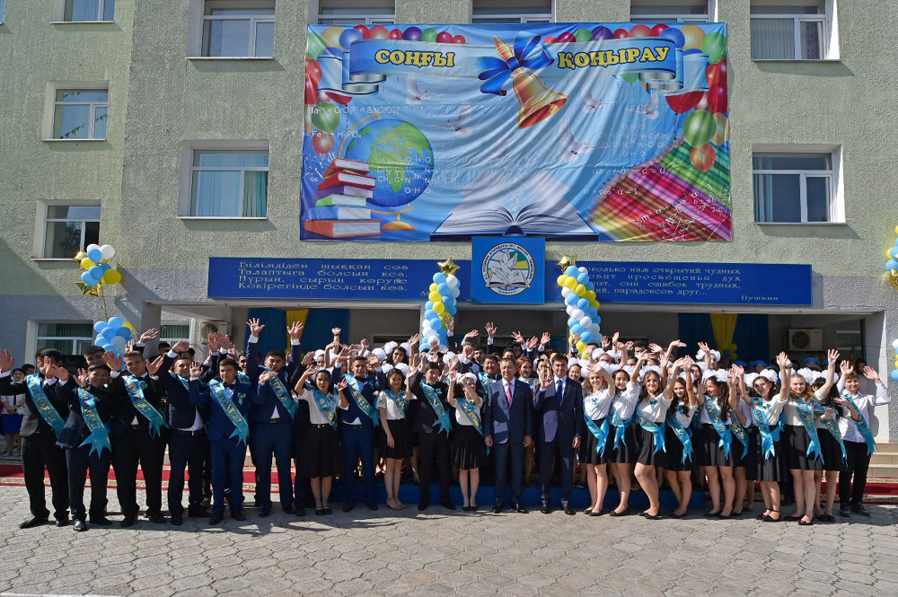 – Sizder Elbasy armandaǵan «Máńgilik el» – ıdeıasynyń qurylysshylary ekenderińizdi eshýaqytta esten shyǵarmańyzdar. Mektep pen joǵary oqý oryndarynda alatyn bilim arqyly sizder elimizdiń úlgili azamaty bolady dep senemin. Qandaı mamandyqtyń ıesi bolsańyzdar da bastysy, óz elimizdiń patrıoty bolýdy umytpańyzdar. Oblysymyzdyń bilim salasy 2016-2017 oqý jylynda respýblıkalyq deńgeıde joǵary kórsetkishterge qol jetkizdi. Munyń barlyǵy ustazdardyń qajyrly eńbeginiń nátıjesi dep bilemin. Atap aıtqanda, oqýshylarymyz respýblıkalyq olımpıadada 30 júldeli oryn men 6 grantty ıelendi. Jaratylystaný – matematıka baǵyty boıynsha «Eń úzdik olımpıadalyq komanda – 2017» ataǵyn jeńip alsa, túrli halyqaralyq olımpıadalar men ǵylymı jobalar baıqaýlarynda 50-den asa júldeli oryndarǵa ıe boldy, – dedi ákim.
