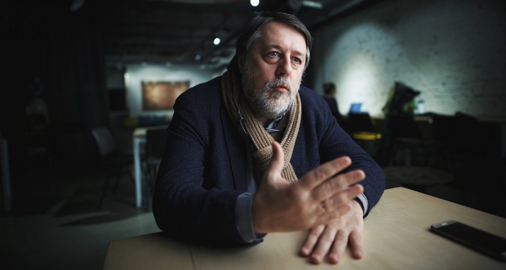 Rejıser Vıtalıı Manskıı (sýrette) osydan 18 jyl burynǵy Pýtındi eske alypty. Osydan 18 jyl buryn 26 naýryzda Pýtın bılikke kelgen.