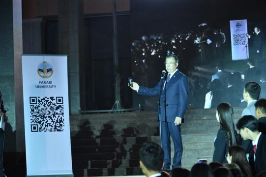 Bıylǵy saltanatty rásim formaty dástúrli kilt berýden ózgeshe, jańa tehnologıalardy paıdalana otyryp júzege asty. Birinshi kýrs stýdentteri sahnadan derbes QR-kodyn skanerlep, erekshe sátke atsalysty.