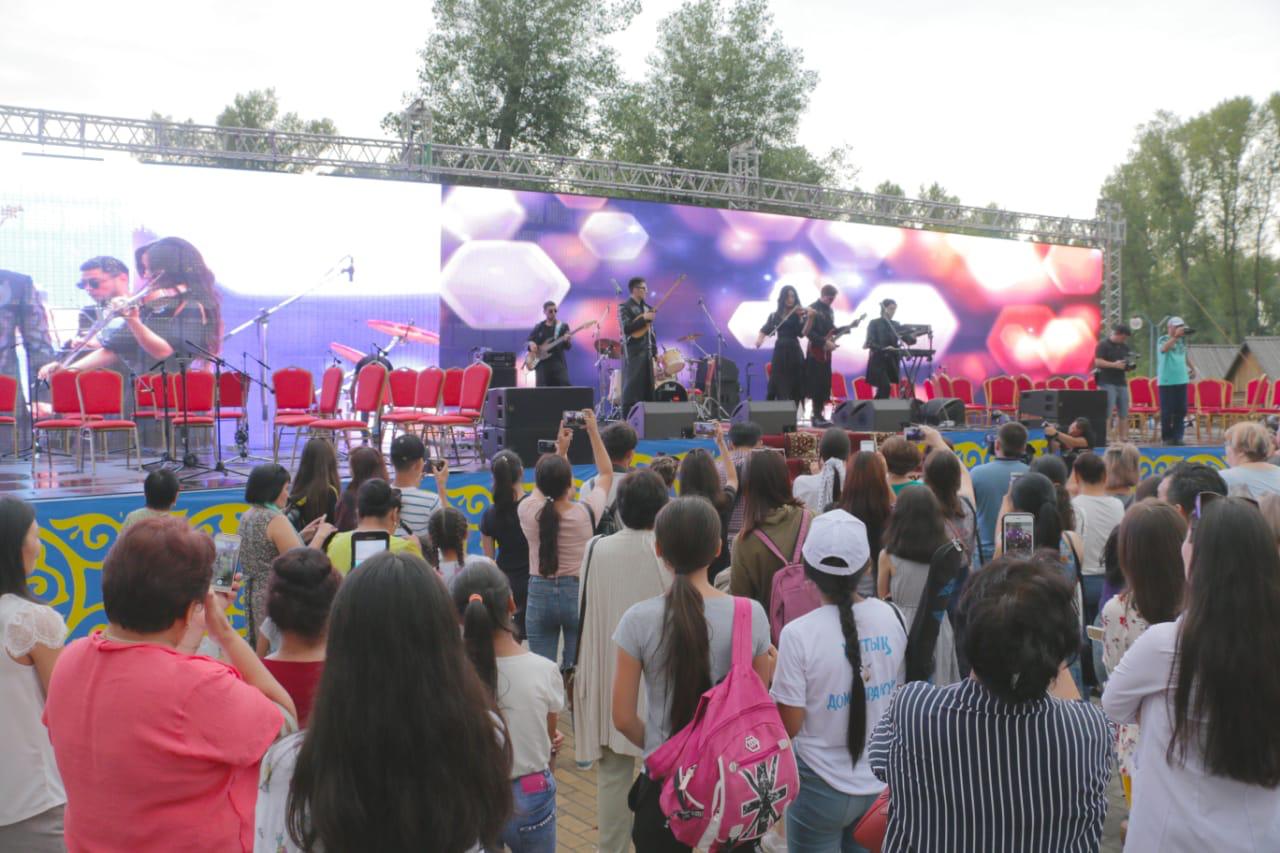 Keshkisin oblystyq sáýlet-etnografıalyq jáne tabıǵı-landshaft mýzeıiniń alańynda elimizdiń úzdik dombyrashylary men estrada juldyzdary óner kórsetti.