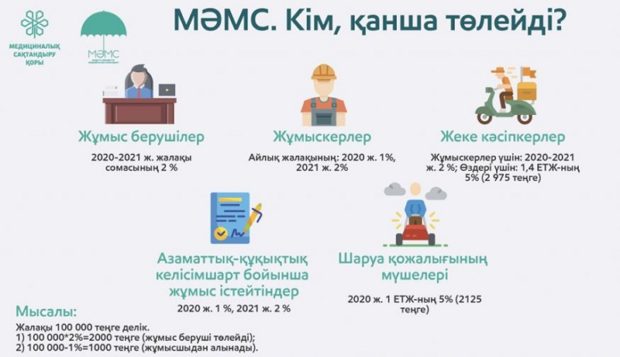 Aıta keterligi, egerde azamat MÁMS júıesinde saqtandyrylmaǵan bolsa, jarna tóleýshi sanatyna qaraı MÁMS úshin aı saıyn tólenetin jarna mólsherin anyqtap alýy kerek. Máselen, jeńildigi bar 15 sanattaǵy azamattar úshin jarnany memleket tóleıdi. Bıyldan bastap, jaldamaly jumyskerlerge – jumys berýshi býhgalterıasy jalaqynyń 2%-y mólsherinde jáne jalaqy qorynan 2% mólsherinde, jalpy Qorǵa 4% tólem jasaıdy. Sondaı-aq, jeke kásipkerler, sharýa qojalyǵy ıeleri, jeke praktıkamen aınalysatyn tulǵalar – eń tómengi jalaqynyń 5%-y mólsherinde (ETJ 2021 jyly da 42 500 teńgeni quraıdy, sondyqtan tólem mólsheri burynǵydaı – 2975 teńge) tólem jasaıdy. Al azamattyq-quqyqtyq negizde shart boıynsha jumys isteıtin tulǵalar – tabysynyń 2%-y mólsherinde, eń joǵarǵy tólem 8500 teńge tólem jasaıdy.