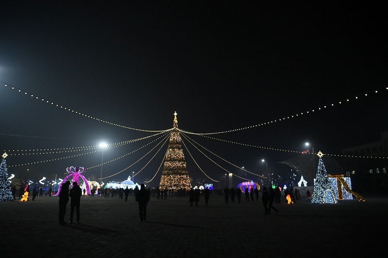 Sharada babalar, ertegi keıipkerleri jáne aıaz ata men aqshaqarlar merekelik sherý uıymdastyryp, sahnalyq kórinister qoıdy. Sondaı-aq, qalalyq mádenıet úıiniń ónerpazdary konserttik baǵdarlamasyn usyndy. Merekelik sharanyń sońy otshashýǵa ulasty.