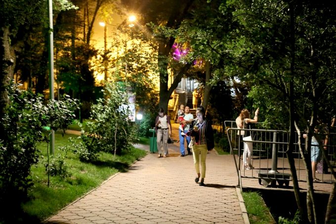Осындай ірі саябақтарда мерекелік серуендер, өнерпаздар байқауы, көрмелер, дәрістер, әңгіме-кеңестер, түрлі сипаттағы кездесулер, т.б. жүргізіледі. Мінекей бүгін өнерпаздарымыз келген қонақтарға көңіл-күй сыйлап ән шырқауда.