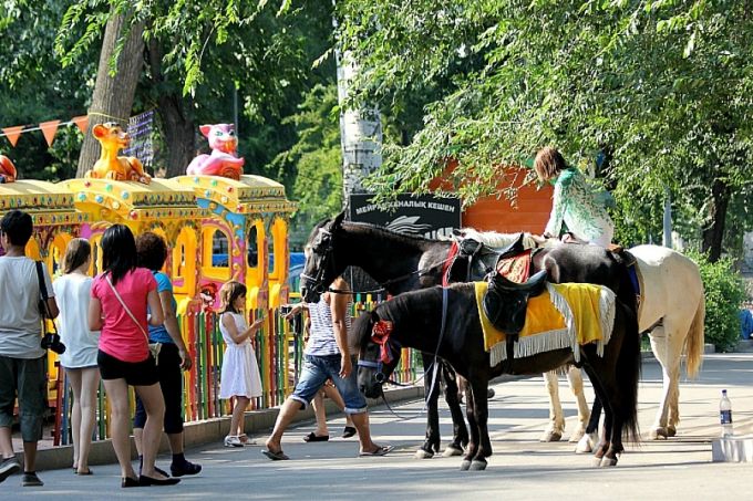 Жақсы көңіл-күйді тек әншілер ғана емес, мына аттар да сыйлайтын тәрізді. Олар әр күн сайын 50 шақты қонақты саябақ ішімен таныстырап шығады.