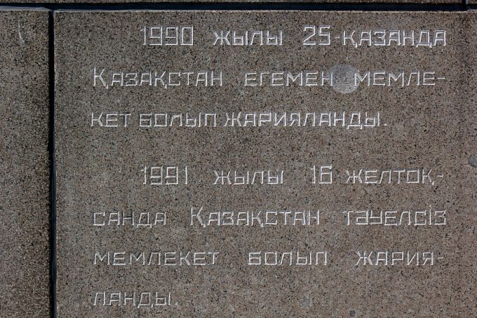 2011 жылы 11 қарашада Қазақстан Республикасы Тәуелсіздігінің 20 жылдығына арналған «Қазақстан» монументалды-сәулет компазициясының ашылу салтанаты болды. Ескерткіш қола, гранит және мәрмәр тастан бүркіт тәріздес құйылған. Ескерткіш ортасында Бірінші Президент бейнесі кескінделген. Ал бүркіттің қанатында Алматы және Астана қаласының символы орын алған. Ескерткіште еліміздің тарихи және сәулет өнерінің маңызды бейнелері көрсетілген.