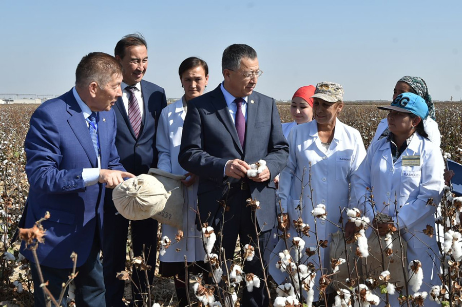 – Ауыл шаруашылығы дақылдарының басқа түрлері өзге өңірлердің барлығында өсіріледі. Мәселен, республикалық көрсеткіште Оңтүстіктің көкөніс өндіруден алар орны 25 пайызды, жүзімнен 70, жемістен 37 пайызды құрайды. Ал мақта дақылы 100 пайыз тек қана осы өңірде өсіріледі. Сондықтан елiмiздегi үлкен табыс әкелетiн жүз жылдық тарихы бар мақта дақылының сапалы сорттарын дамытып, инновациялық технологияларды өндіріске ендіру арқылы ақ алтынды өндірудің тиімділігін арттыруымыз керек. Сондықтан осы саладағы мәселелердi бiрлесiп жүйеге түсiрсек қана мол өнiмге қол жеткiземiз, – деді әкім.