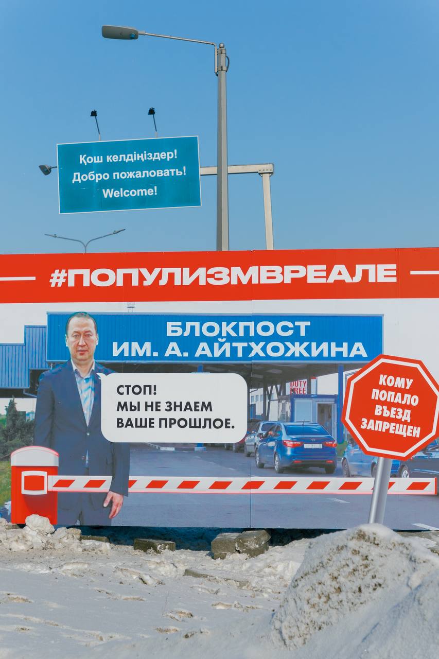 Ал блокбекеттің өзінде "Популизм шынайы өмірде. А.Айтхожин атындағы блокбекет. Тоқта! Біздің сіздің өткен өміріңізді білмейміз. Кім көрінгенге кіруге тыйым салынған", - деп жазылыпты.