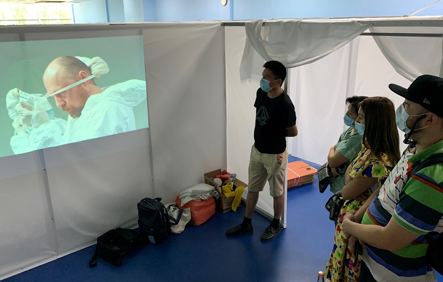 Семинарда жеке қорғаныс құралдарын кию және шешу дағдыларын нығайту бойынша тәжірибелік сабақтар «Халық Арена» кешенінде ұйымдастырылды. Алдағы семинарлар дәрігерлерге арналып, ақ халатты абзал жандар COVID-19 вирусымен ауырған пациенттерді күту мен емдеу бойынша біліктіліктерін жетілдіреді.