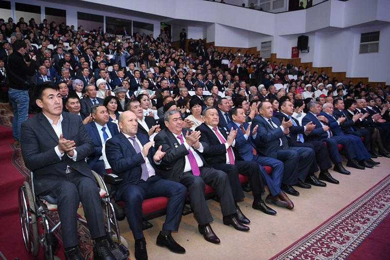 – Тәуелсіздік – ұлы ұғым. Жұмыр жер бетінде азаттығын аңсап, бостандыққа қол жеткізе алмай жүрген ұлттар көп. Жыл, ай емес, минут сайын құбылатын алмағайып заманда Қазақстанымызбен мақтанып қана қоймай, тәуелсіздігімізді тұғырлы ету үшін баршамыз еңбек етуге тиістіміз. Биыл Тәуелсіздік күні мерекесін жаңа облыс орталығы — Түркістан қаласында тұңғыш рет атап өтудеміз. Бұл да тарихи оқиға. Бүгінде Елбасымыздың қолдауымен Түркістанымыз түрленіп, облысымыздың әлеуеті көтеріліп келеді. Жыл басынан бері өнеркәсіп өнімінің көлемі 409,6 млрд. теңгені құрады. Ауыл шаруашылығының жалпы өнім көлемі 508,2 млрд. теңгеге жетсе, шет елдерге ет 6,2 мың тонна ет экспорттаған облысымыз бұл көрсеткіш бойынша республикада 1-орынды иеленді. 11 айда құрылыс жұмыстарының көлемі 110 млрд. теңгеге, ал, пайдалануға берілген тұрғын үйдің жалпы алаңы 374,8 мың шаршы метрді құрады. Қазірдің өзінде «Риксос» қонақ үйі мен іскерлік орталығының қазығы қағылды. Таяуда Түркістан қаласында 30 ірі нысанның құрылысы басталады. Елбасымыздың қолдауымен Түркістанның тынысы ашылып, жаңа мақсаттар мен межелер айқындалуда. Баршаңызды Тәуелсіздік күнімен құттықтай отырып, отбасыларыңызға амандық, игі бастамаларыңызға сәттілік тілеймін, – өңір басшысы еңбегімен дараланған 55 адамға түрлі марапаттарды салтанатты түрде тапсырды.