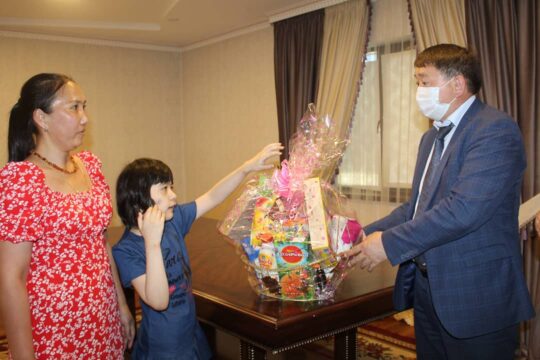 وسى ورايدا، اۋدان اكىمىنىڭ ورىنباسارى م.تولەۋجانوۆ ەرەكشە كۇتىمدى قاجەت ەتەتىن گۇلنۇر نەسىپبەك پەن ءلاتاي ەرسۇلتاننىڭ ۇيىنە ارنايى بارىپ، اقجارما تىلەگىن ايتىپ، اۋدان اكىمىنىڭ ارنايى ازىرلەگەن سىي-سىياپاتىن تابىستاپ، حالىقارالىق بالالاردى قورعاۋ كۇنىمەن قۇتتىقتاپ قايتتى.
