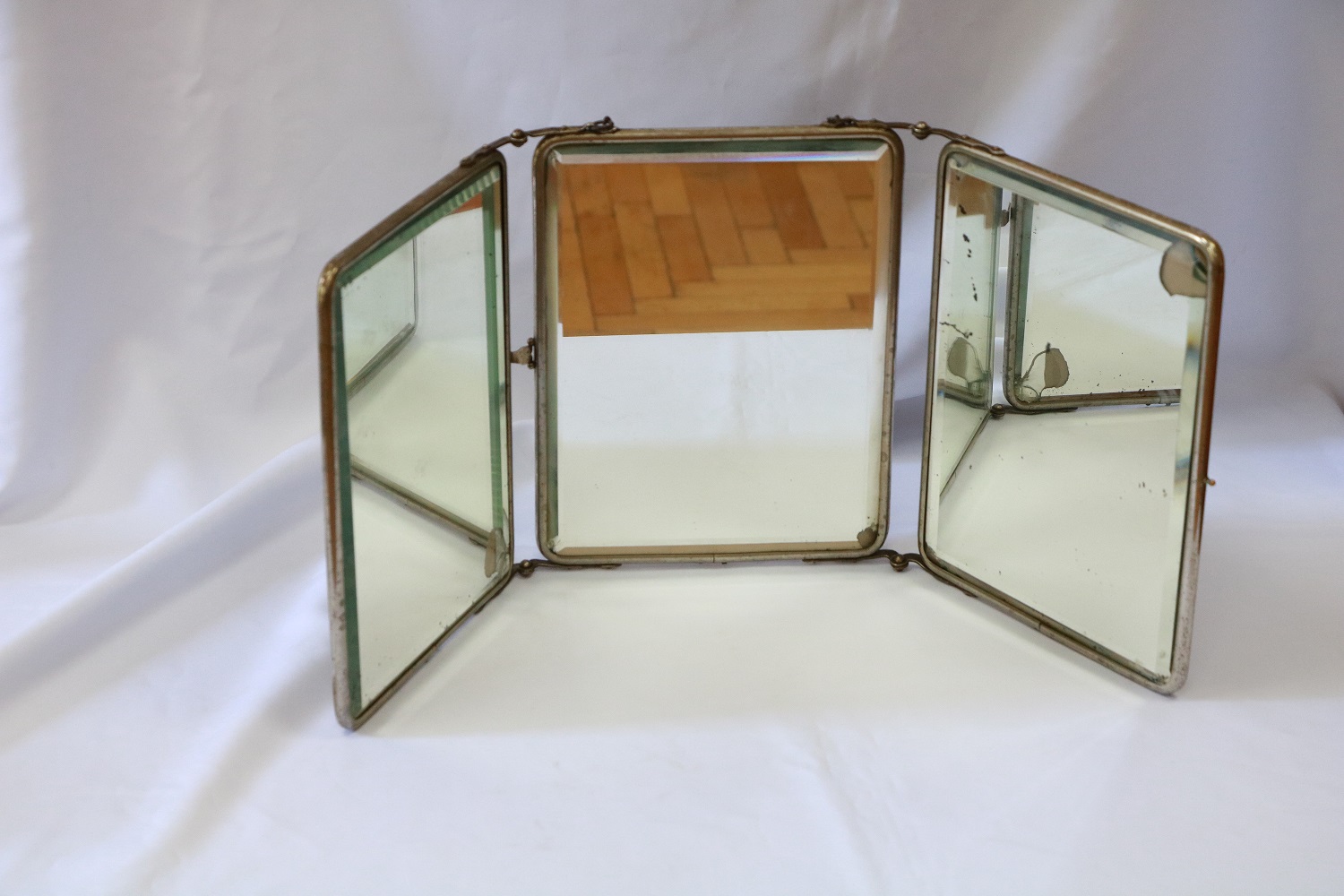 ءانشى ايناسىن مۋزەي قورىنا 1975 جىلدىڭ 15 تامىزىندا قىزى كۇلاش جاقىپوۆا وتكىزگەن. ادەتتە ءۇش بولىكتەن تۇراتىن جينالمالى اينانىڭ ەكى جاعىنداعى بولىكتەرىن بىرىكتىرىپ جالعاپ تۇرعان ورتا بولىگىنىڭ كولەمى باسقالارىنان ۇلكەنىرەك بولىپ كەلەتىن بولسا، بۇل اينانىڭ ەرەكشەلىگى ءۇش بولىكتىڭ دە كولەمى بىردەي. اينانىڭ ولشەمى: 69 ح 28 سم. ماتەريالى: مەتالل، بىلعارى، شىنى. اينا ۇقىپتى، ءارى جيناقى جاسالعان. ونى ۇستەل ۇستىنە تۇرعىزىپ قويۋعا دا بولادى، سونداي-اق قابىرعاعا ىلۋگە ىڭعايلى ەتىپ جاسالعان ارتقى بولىگىندە ىلگەگى بار. مۇنداي اينا تۇرلەرىن ءارتىس، اكتەرلار كۇنى بۇگىنگە دەيىن مادەنيەت وشاقتارىنىڭ گريمەركالارىندا قولدانادى.