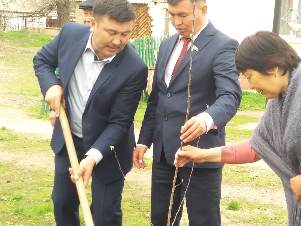 2015 جىلى مۇحاڭ مەكتەپ بىتىرگەنىنە 20 جىل تولعان كەزدە الماتىداعى ءتالىمباقتاردان 25 كوشەتتى اپارىپ، ءوزى ءبىلىم العان مەكتەبىنىڭ اۋلاسىنا وتىرعىزعان ەدى. 2016 جىلى الاش ۇكىمەتىنىڭ قۇرىلعانىنا 100 جىلدىق مەرەيتويى كەزىندە دە قاراپ قالعان جوق. مەكتەپ پەن بالاباقشانىڭ ىرگەسىندە جەلكىلدەپ ءوسىپ كەلە جاتقان الما اعاشتارىنىڭ قاسىنان تاعى دا 100 ءتۇپ كوشەت اكەلىپ وتىرعىزدى. وسى ءبىر يگىلىكتى ءىستى ادەتكە اينالدىرعان ازامات بيىل تاعى دا 200 ءتۇپ جەمىس اعاشىنىڭ كوشەتىن وتىرعىزعاندا، اۋزىنان تاستاماي اڭگىمە قىلاتىن ەكپىندىسىن ماۋەلى يران باعىنا اينالدىرۋعا تولىقتاي بەكىنگەنىن بايقاعانداي بولدىم. ءوز كەزەگىندە اۋىل جاستارى دا ابزال اعالارىنىڭ يىگىلىكتى ءىسىن ءىلىپ اكەتىپ، بايباتشانوۆ وتىرعىزعان باۋدى بارىنشا كۇتىپ، باپتاپ كەلەدى.