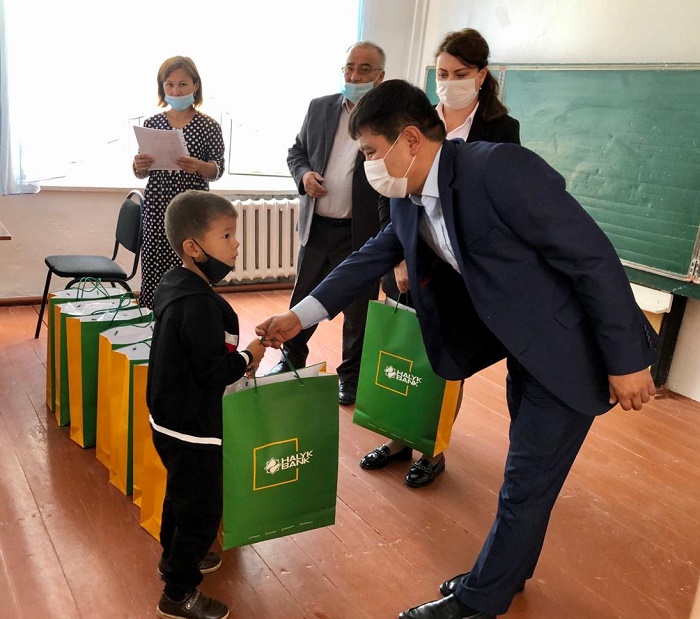 سومكەلەردەن جانە كەرەكتى كەڭسە تاۋارلارىنان (داپتەرلەر، قالامدار، قالامساپتار جانە ت.ب.) تۇراتىن «حالىق» قايىرىمدىلىق قورىنىڭ مەكتەپ جيناقتارى جەرگىلىكتى اتقارۋ ورگاندارى مەن ءبىلىم بەرۋ باسقارمالارى بەرگەن تىزىمگە سايكەس تاراتىلدى. سوڭعى 5 جىلدا «حالىق» قورى وسىلايشا از قامتىلعان جانە كوپبالالى وتباسىلاردان شىققان 4000-نان استام ءبىرىنشى سىنىپ وقۋشىلارىن مەكتەپكە دايىندادى، وسى ماقساتقا «حالىق» قورى 54 ميلليوننان استام تەڭگە ءبولدى.