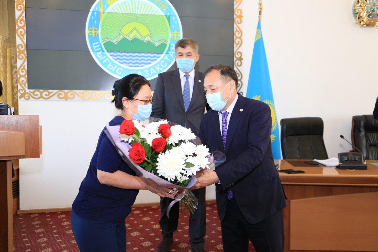 ەڭبەكتەرىنىڭ ەلەنىپ، العىسقا يە بولۋلارى بويلارىنا قۋات بەرمەك. وسى رەتتە، «دەنساۋلىق ساقتاۋ ىسىنە قوسقان ۇلەسى ءۇشىن» توسبەلگىسى ايماقتىق فيزيوپۋلمولوگيالىق ورتالىعىنىڭ انەستەزيولوگ-رەانيماتولوگى ورالبەك ابىلماجىنوۆكە بەرىلدى. اتالمىش ورتالىقتىڭ مەدبيكەسى نازىم يگيسينوۆا مەن انا مەن بالا ورتالىعىنىڭ مەيىربيكەسى سابيرا سەكسەنبايەۆا مينيسترلىكتىڭ العىس حاتىنا يە بولدى.