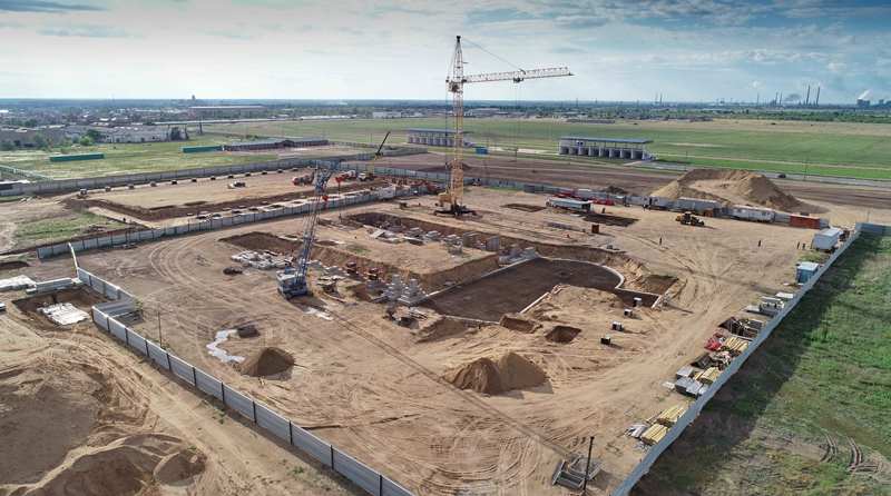 فۋتبول مانەجىنىڭ قۇرىلىسىن «Taraz Qurylys Invest» ج ش س جۇرگىزىپ جاتىر. قازىرگى كەزدە قۇرىلىس كومپانياسى مانەجدىڭ قازانشۇڭقىرىن قازىپ، فۋندامەنت تورىن دانەكەرلەۋ جانە ىرگەتاس بلوكتارىن ورناتۋمەن اينالىسىپ جاتىر.