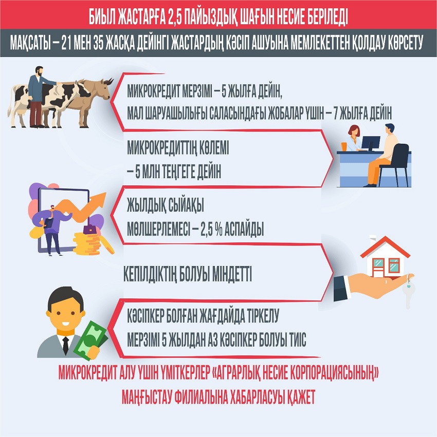 ءوزىنىڭ جەكە كاسىبىن اشقىسى كەلەتىن بولماسا، بار كاسىبىن ودان ءارى دامىتقىسى كەلەتىن جاستار بۇل شاعىن نەسيە تۇرىنە ءوتىنىم بەرۋىنە بولادى.
