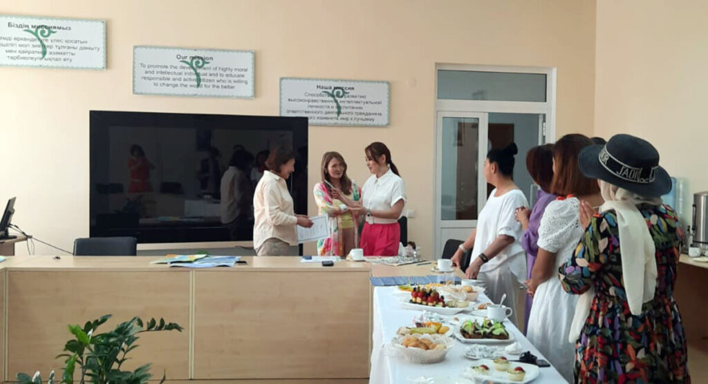 – ەلدەگى بالالارعا وزىق ۇلگىدە ءبىلىم بەرىپ وتىرعان الماتى قالاسىنداعى حيميا-بيولوگيا باعىتىنداعى NIS ۇستازدارى مەن باسشىلىعىنا، جۋرناليستەر قاۋىمىنا، رەسمي اقپاراتىن ۇسىنىپ وتىراتىن باسپا ءسوز كىزمەتىنە بۇگىنگى شارا ءۇشىن العىسىمىز شەكسىز. ءتورتىنشى بيلىك وكىلدەرىن شاقىرىپ، كەرەمەت ارتتەراپيا جانە اعىلشىن تىلىندە ءدارىس ۇيىمداستىرىپ، جان دۇنيەمىزدى رۋحاني بايىتتىڭىزدار. ءبىلىمدى ۇرپاق تاربيەلەۋ جولىنداعى ەڭبەكتەرىڭىز جەمىستى بولسىن،– دەپ اعىنان جارىلدى “ەۆرازيا” ارناسىنىڭ رەداكتورى ءارىپجان الي.