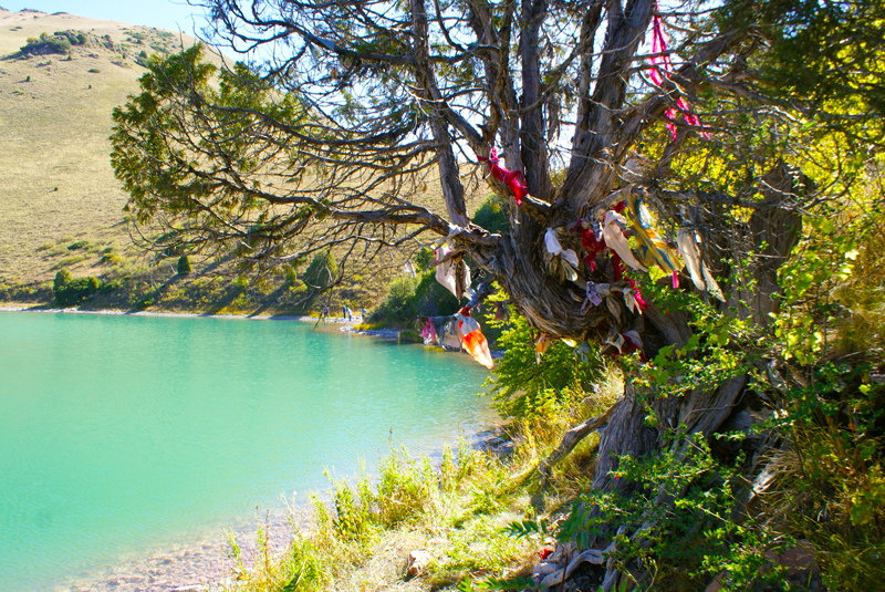 جوق، بۇل ەلەس ەكەن، ايتپەسە، كوككول ايناداي جىلتىراپ، ادەمى اسپەتىمەن كوز ارباعان قالپى تىپ-تىنىش جاتىر. توسىن مىنەز تانىتىپ، بوزداپ كەپ بەرەتىن ماقۇلىق ءدۇر سىلكىنىپ، شىعا كەلەدى دەگەنگە سەنۋ مۇمكىن ەمەس. كول جيەگىندەگى جالعىز ءتۇپ ارشا اپپاق گۇلدەرىن شاشىپ تۇرعانداي، بۇتاقتارىنا بايلانعان ۇزىك-سوزىق شۇبەرەكتەر جەل تۇرسا، جەلبىرەپ كەتەردەي. قىزىعى، ءۇپ ەتكەن جەل دە جوق.
