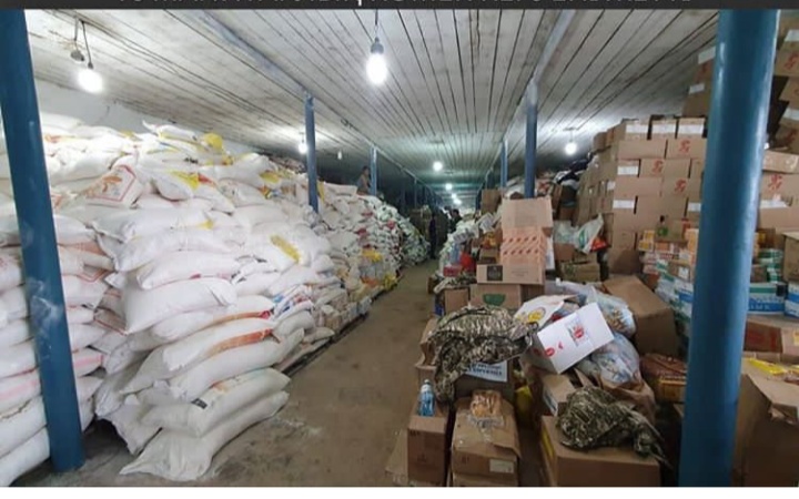 سونىڭ ىشىندە 18 توننا ۇن، 7 توننا كۇرىش، 3630 ليتر كۇنباعىس مايى، 6 توننا ماكارون ونىمدەرى، 500 كگ ارپا جارماسى، 4،5 توننا قانت، 548 قوراپ شاي، سول سياقتى 6 مىڭ شارتى مەترلىك قۇرىلىستىق اعاش ماتەريالدارى، 100 توننا سەمەنت، 20 مىڭ كىرپىش، 90 قاپ قۇرىلىس قوسپاسى، 15 توننا گيپسوكارتون، 10 توننا قۇرعاق قوسپا بار.