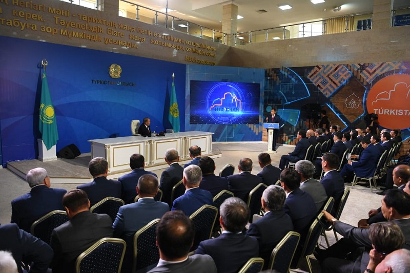 تۇركىستاندى دامىتۋ جونىندەگى القالى جيىندا مەملەكەت باسشىسى تۇركىستان قالاسىن تۇركى الەمىنىڭ مادەني-رۋحاني ورتالىعى رەتىندە دامىتۋ جونىندەگى باس جوسپاردىڭ تۇجىرىمداماسىن ماقۇلداۋ جانە «TURKISTAN» ارنايى ەكونوميكالىق ايماعىن قۇرۋ جونىندەگى تاريحي جارلىقتارعا قول قويدى.