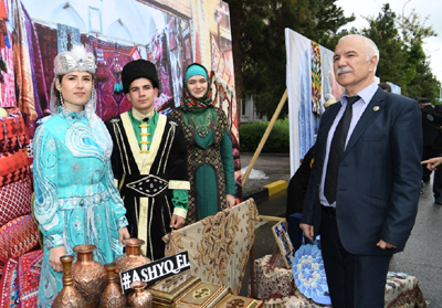 كەيىن وبلىس باسشىسى ج. تۇيمەبايەۆ ءتۇرلى مادەنيەت ورتالىقتارى دايىنداعان كورمەنى تاماشالادى. شاراعا ەتنوس وكىلدەرى سالت-داستۇرلەرى مەن ادەپ-عۇرىپتارىن تانىتاتىن تۇرمىستىق زاتتارىن قويعان.