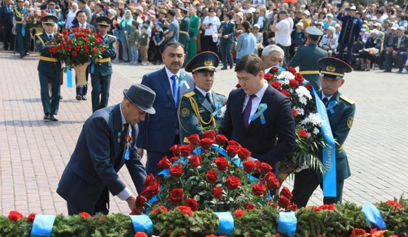 وسكەمەن قالاسىنداع داڭق مەموريالىندا جالىپى حالىقتىڭ مەرەكە ءوتتى. شىعىس قازاقستان وبلىسى اكىمىنىڭ ءبىرىنشى ورىنباسارى الماسحان سماتلايەۆ بارشا تۇرعىنداردى مەرەكەمەن قۇتتىقتاپ، داڭق مەموريالىنا گۇل شوقتارىن قويىپ، وتان قورعاپ، مەرت بولعان ارداگەرلەردى ەسكە الدى.