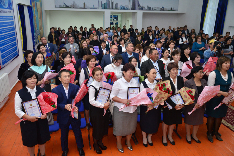 – قۇرمەتتى ۇستازدار! سىزدەردى بۇگىنگى جارقىن دا قۋانىشتى، ايتۋلى مەرەكە –مۇعالىمدەر كۇنىمەن قۇتتىقتايمىن! ەلباسىمىز ن.ءا.نازاربايەۆتىڭ «قازاقستاندىقتاردىڭ ءال-اۋقاتىنىڭ ءوسۋى: تابىس پەن تۇرمىس ساپاسىن ارتتىرۋ» اتتى قازاقستان حالقىنا ارناعان جولداۋىندا كەلەسى جىلى «پەداگوگ مارتەبەسى تۋرالى» زاڭدى ازىرلەپ، قابىلداۋ قاجەت ەكەنىن تىلگە تيەك ەتىپ، مۇعالىمدەر مەن مەكتەپكە دەيىنگى مەكەمەلەر قىزمەتكەرلەرى ءۇشىن بارلىق يگىلىكتى قاراستىرۋ كەرەكتىگىن باسا ايتقان بولاتىن. ۇستاز – كەلەر كۇننىڭ ۇستاسى. ۇرپاعىمىزدىڭ ەرتەڭ قانداي ادام بولىپ وسەتىنى – مۇعالىمدەردىڭ بۇگىنگى ەڭبەگىنىڭ جەمىسى بولماق. ۇلى اعارتۋشى احمەت بايتۇرسىنوۆتىڭ «ۇستاز ۇزدىكسىز ىزدەنگەندە عانا، شاكىرت جانىنا نۇر قۇيا الادى»، – دەگەن ءسوزى ىزدەنىمپاز، جاڭاشا ۇستازدارعا ارنالعانداي. مۇنى ءاربىر ءمۇعالىم جادىندا ساقتاۋى ءتيىس. تاۋەلسىز قازاق ەلىنىڭ دامۋىنا قوسىپ كەلە جاتقان ەڭبەكتەرىڭىز ءۇشىن، مەن بارشاڭىزعا شەكسىز العىسىمدى بىلدىرەمىن، – دەدى.